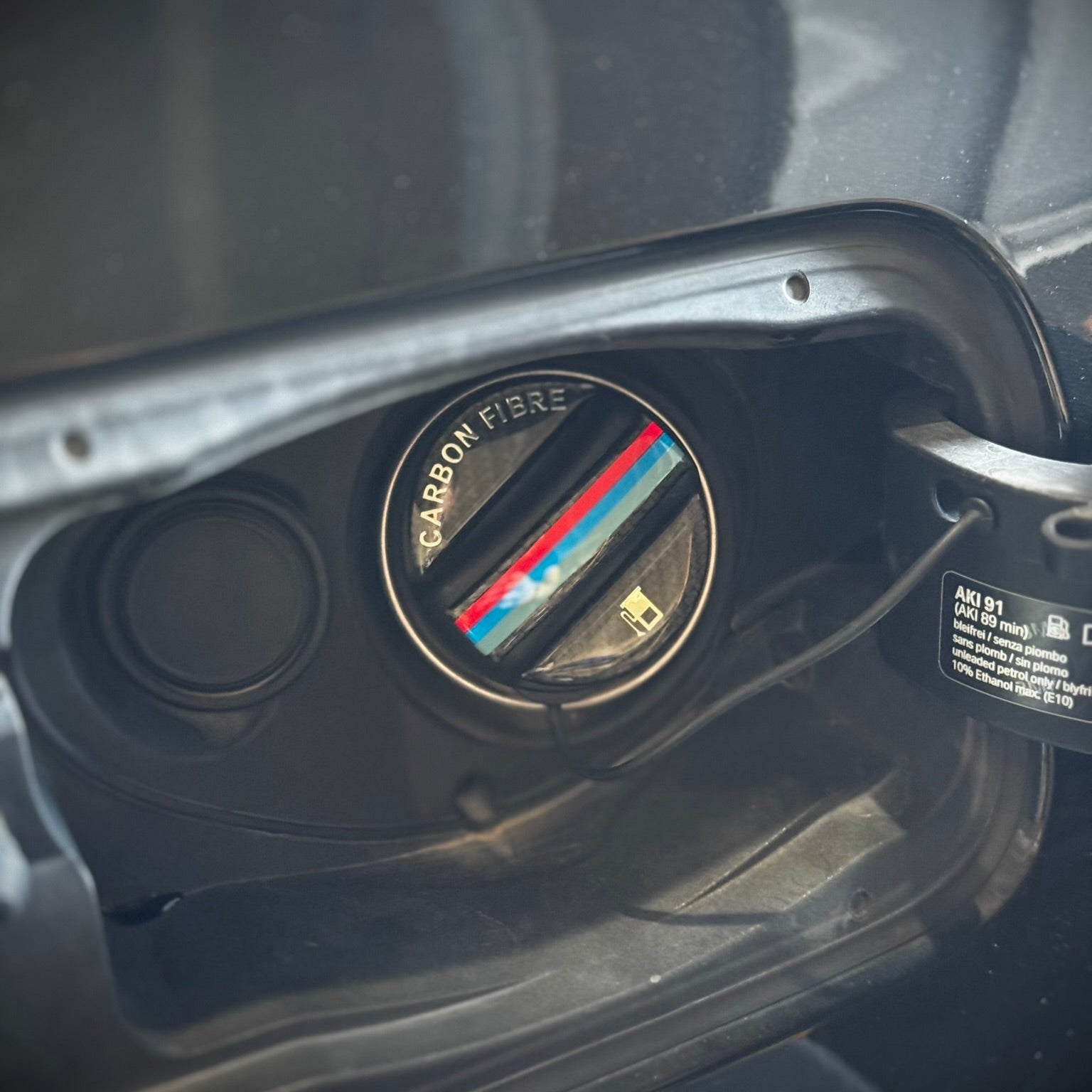Give your BMW a sporty and exclusive touch with this carbon fiber fuel filler cap sticker.